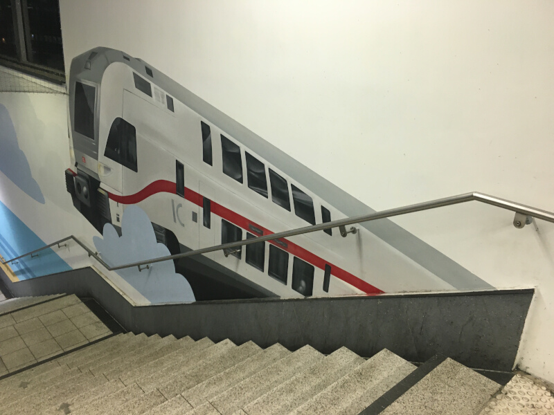 Manchmal führt der Weg zum richtigen Bahnsteig über steile Treppen. Hier ist es hilfreich sich gegenseitig zu helfen.