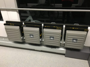 Nach Aussteigereihenfolge gestapelte Räder im Nahverkehr